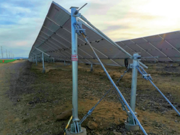 未來光伏建設用地越來越少,可利用土地空間的柔性支架勢在必行,而大功率光伏組件是柔性支架的最佳搭檔,雙方科形成更大跨度空間結構技術,支架由承重索、斜拉索或者鋼斜柱、鋼立柱和鋼梁組成,光伏板通過連接件與上、下柔性支撐索連接。相對于傳統光伏支架最大區別在于把固定支架的檁條變成了柔性支架的承重索,整個支架系統主要承受拉應力或壓應力,能夠最大程度地利用材料力學性能。